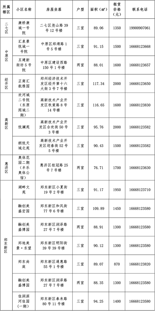 本批次配租房源共計15套(41間),其中為二七區(qū)1套(3間)、中原區(qū)2套(5間)、經(jīng)開區(qū)1套(3間)、高新區(qū)3套(9間)、惠濟(jì)區(qū)1套(2間)、鄭東新區(qū)7套(19間)。水電費均為民用水電標(biāo)準(zhǔn),房源精裝修交付,周邊配套設(shè)施齊全,配備家具家電,拎包入住,后續(xù)房源將根據(jù)裝修進(jìn)度情況陸續(xù)配租,具體以系統(tǒng)實際上線為準(zhǔn)。